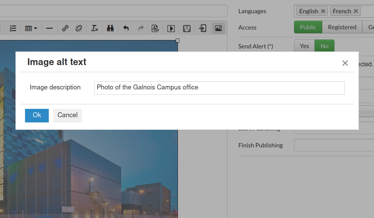 Add a description of the image and click ok.